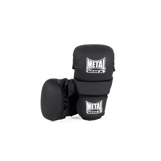 Gant de MMA type sparring. Marque Metal Boxe. Dédiés aux entraînements intensifs, aux séances de sparring ou aux compétitions amateurs, ces gants sont spécialement conçus pour protéger l’ensemble de la main tout en préservant la souplesse nécessaire pour les phases de grappling. L’insert de mousse au niveau du pouce et le système de velcro doublé d’un élastique apporte une sécurité et un maintien supplémentaires.